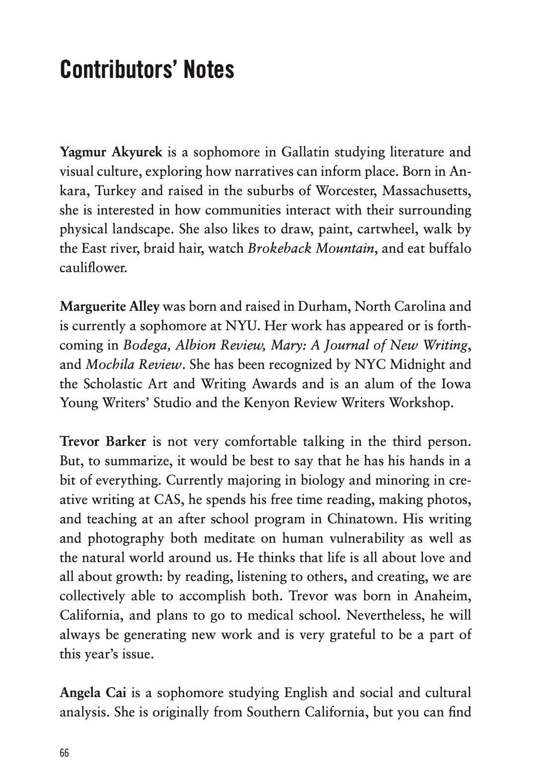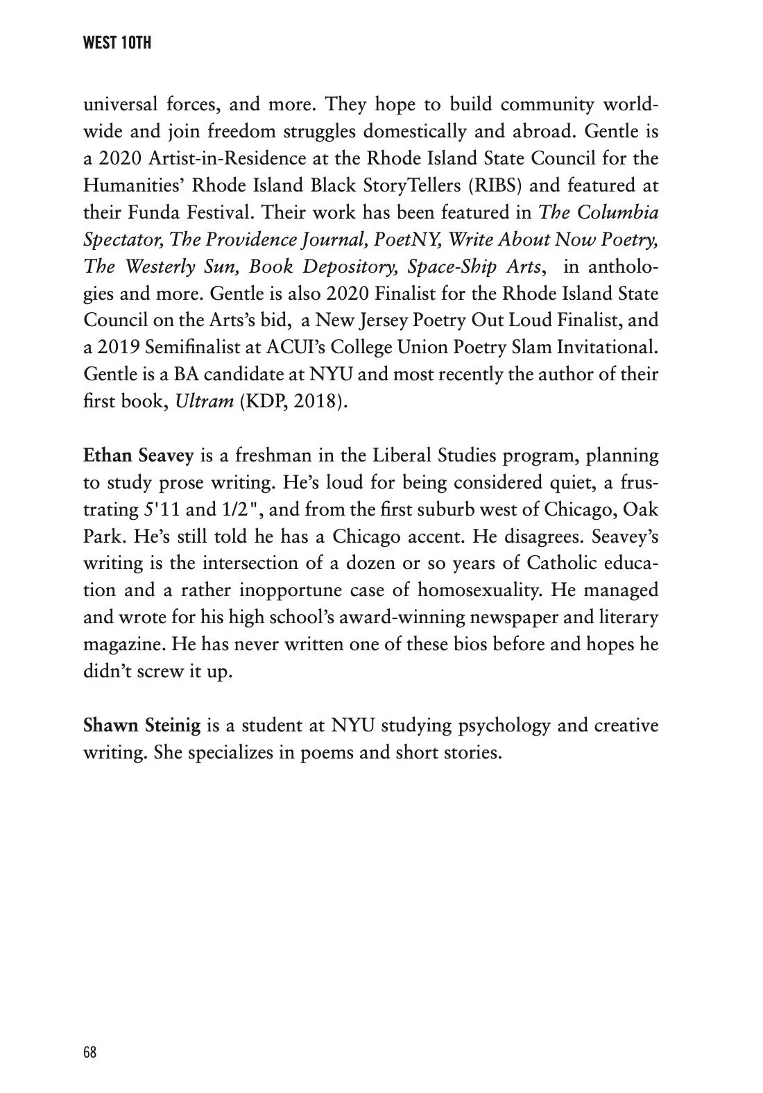 The NYU Creative Writing Program's Undergraduate Literary Journal